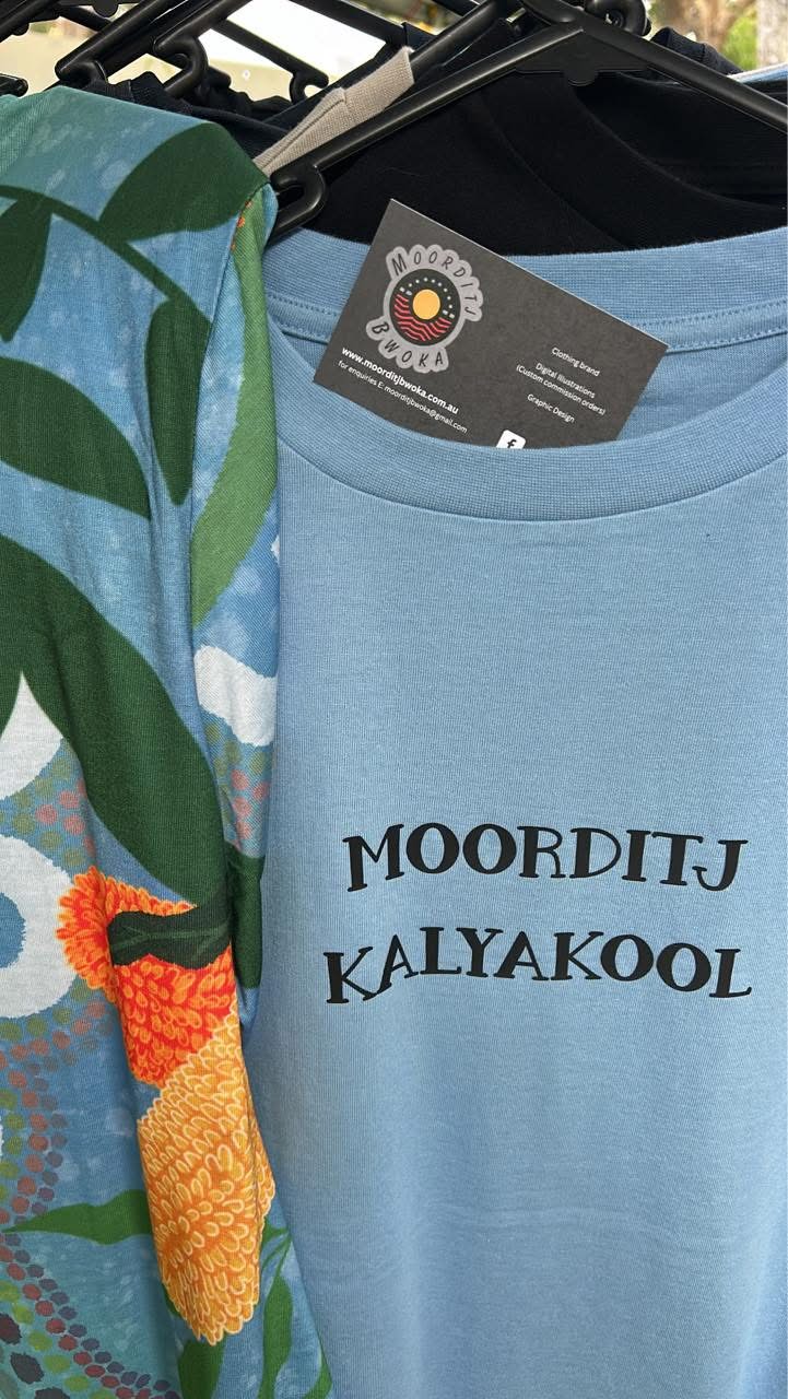 Inspired by Birak—the Noongar season of the first summer—this collection honours the time when the land bursts to life, the weather warms, and renewal is all around us. Every piece in the Birak Collection features vibrant designs that reflect the colours, energy, and spirit of Country, storytelling through bold patterns and thoughtful detail.